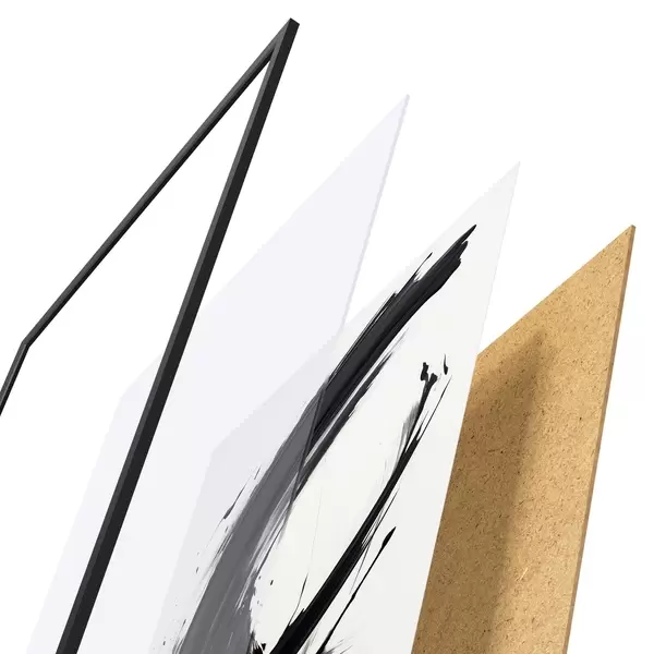 Das Poster besteht aus einem Rahmen, Plexiglas, einem gedruckten Bild und einer Rückwand aus Spanplatten. Dank der Halterungen auf der Rückseite kann das Poster sofort an die Wand gehängt werden.