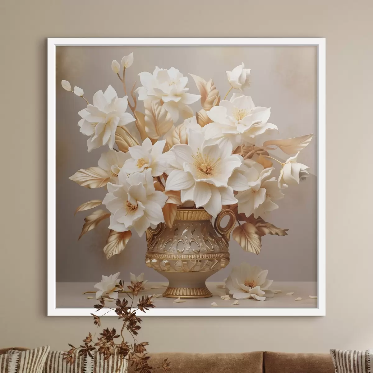 Poster Zarter Blumenstrauß in einer klassischen Vase im Stil des Realismus Nr f44237