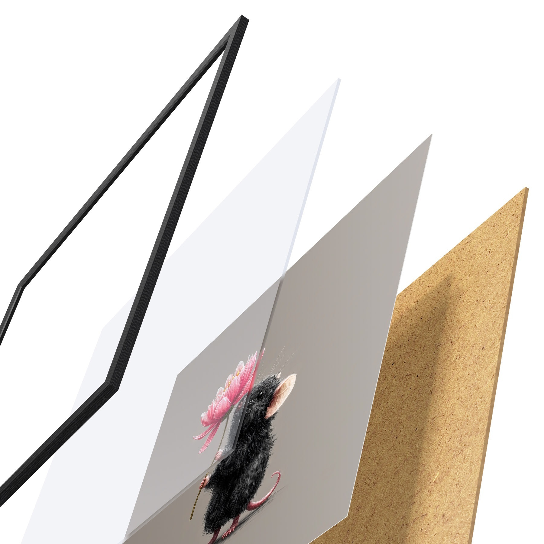 Poster Charmante Maus inhaliert den Duft einer rosa Pfingstrose Nr f44248