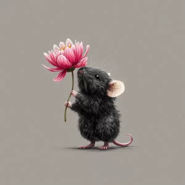 Poster Charmante Maus inhaliert den Duft einer rosa Pfingstrose Nr f44248