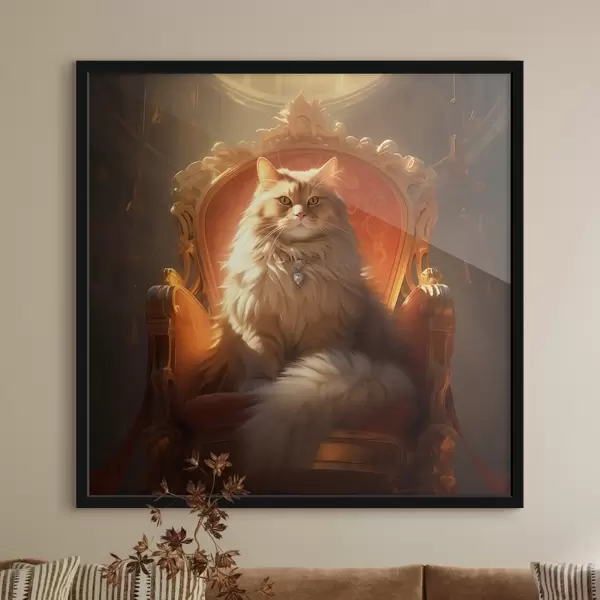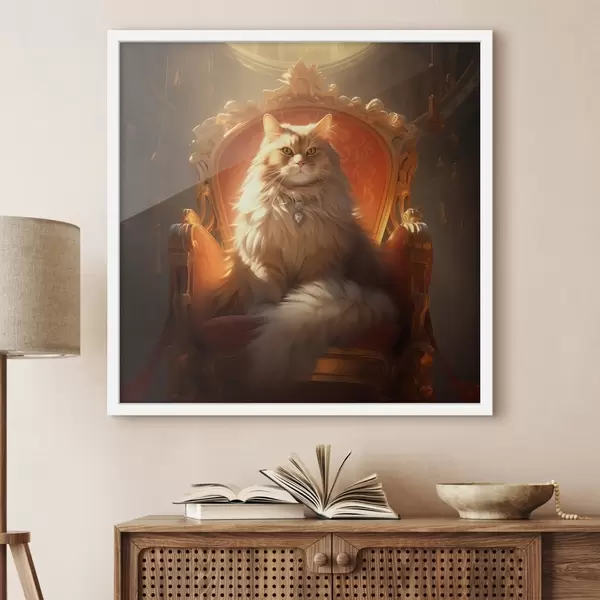 Poster Regal Katze mit bernsteinfarbenen Augen auf einem Thron in den Strahlen der Herrlichkeit im Barock-Stil Nr f44250