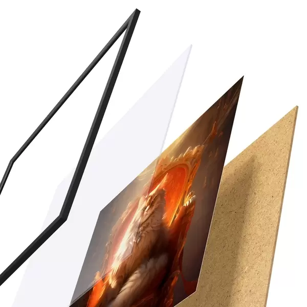 Das Poster besteht aus einem Rahmen, Plexiglas, einem gedruckten Bild und einer Rückwand aus Spanplatten. Dank der Halterungen auf der Rückseite kann das Poster sofort an die Wand gehängt werden.