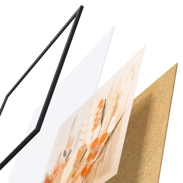 Das Poster besteht aus einem Rahmen, Plexiglas, einem gedruckten Bild und einer Rückwand aus Spanplatten. Dank der Halterungen auf der Rückseite kann das Poster sofort an die Wand gehängt werden.