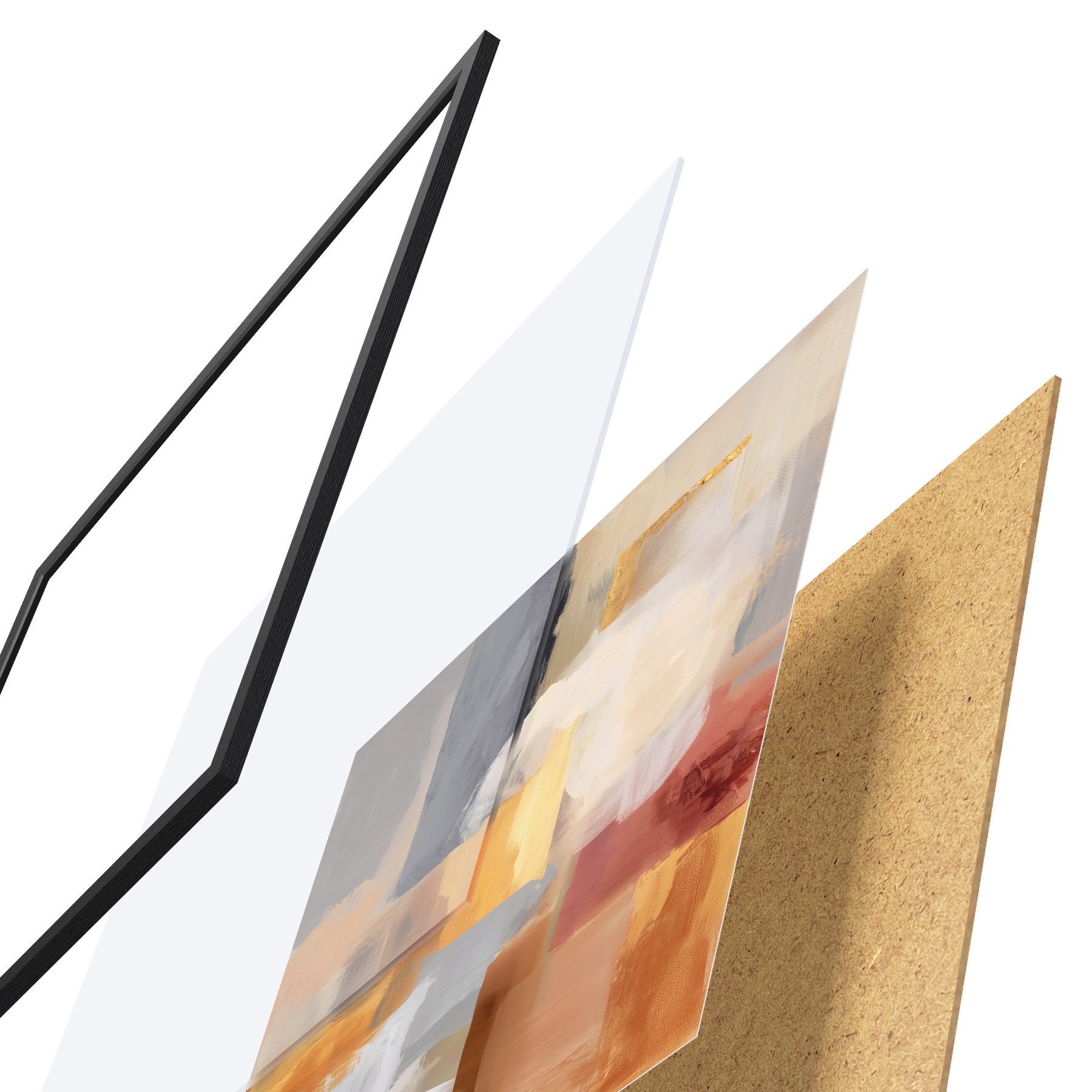 Das Poster besteht aus einem Rahmen, Plexiglas, einem gedruckten Bild und einer Rückwand aus Spanplatten. Dank der Halterungen auf der Rückseite kann das Poster sofort an die Wand gehängt werden.