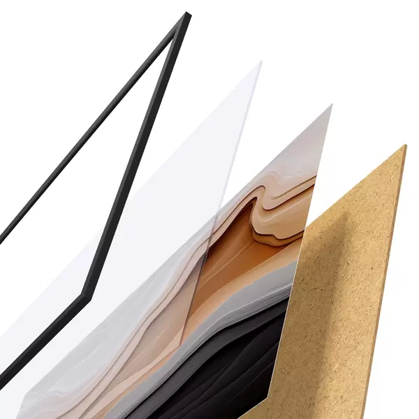 Das Poster besteht aus einem Rahmen, Plexiglas, einem gedruckten Bild und einer Rückwand aus Spanplatten. Dank der Halterungen auf der Rückseite kann das Poster sofort an die Wand gehängt werden.