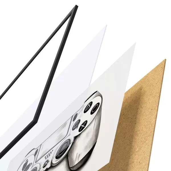Das Poster besteht aus einem Rahmen, Plexiglas, einem gedruckten Bild und einer Rückwand aus Spanplatten. Dank der Halterungen auf der Rückseite kann das Poster sofort an die Wand gehängt werden.