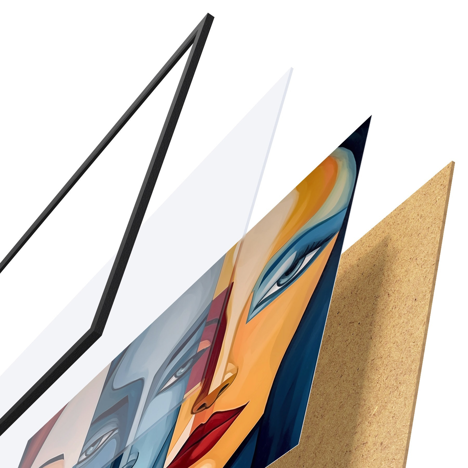 Das Poster besteht aus einem Rahmen, Plexiglas, einem gedruckten Bild und einer Rückwand aus Spanplatten. Dank der Halterungen auf der Rückseite kann das Poster sofort an die Wand gehängt werden.