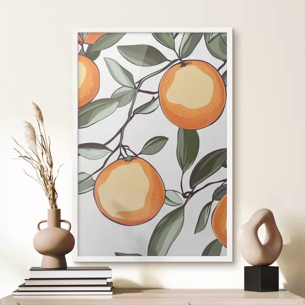 Poster Gemalte Orangen auf einem Zweig Nr f44319
