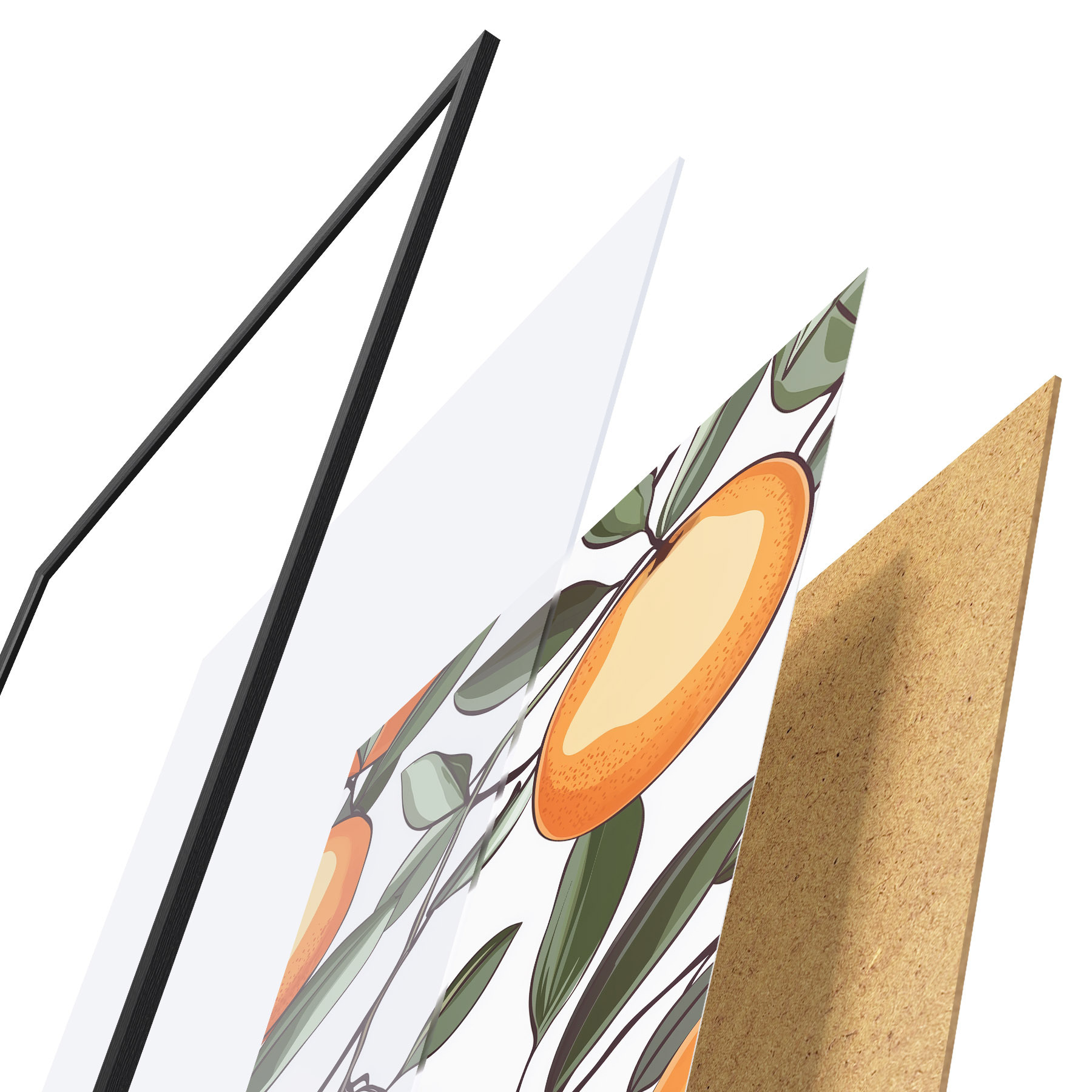 Das Poster besteht aus einem Rahmen, Plexiglas, einem gedruckten Bild und einer Rückwand aus Spanplatten. Dank der Halterungen auf der Rückseite kann das Poster sofort an die Wand gehängt werden.