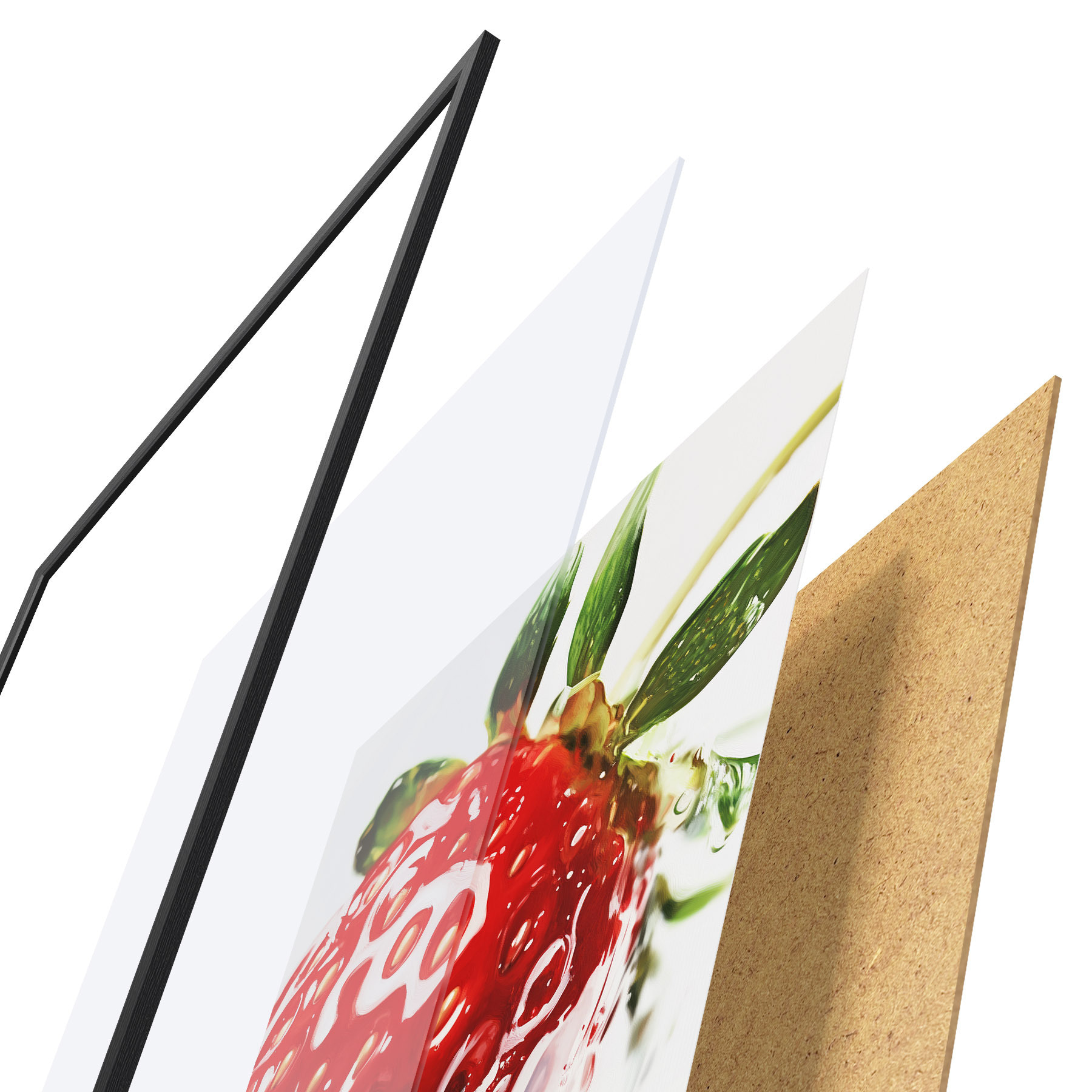 Das Poster besteht aus einem Rahmen, Plexiglas, einem gedruckten Bild und einer Rückwand aus Spanplatten. Dank der Halterungen auf der Rückseite kann das Poster sofort an die Wand gehängt werden.