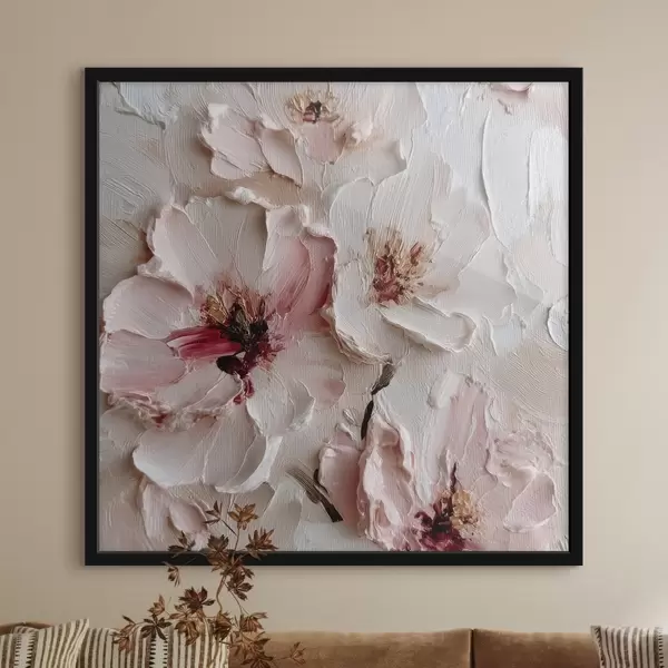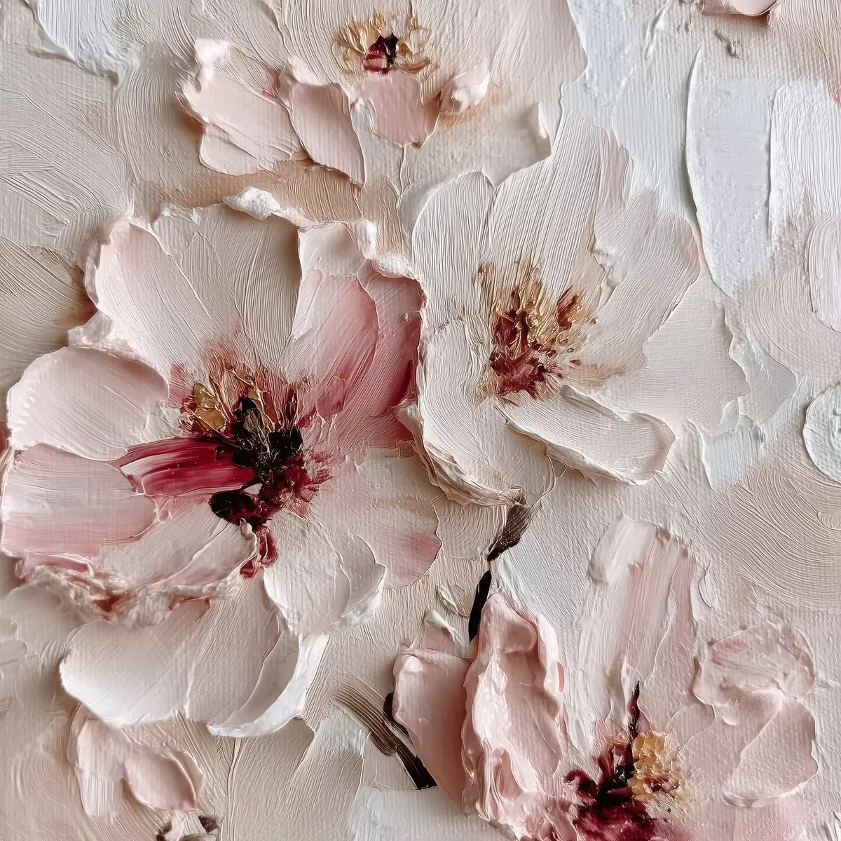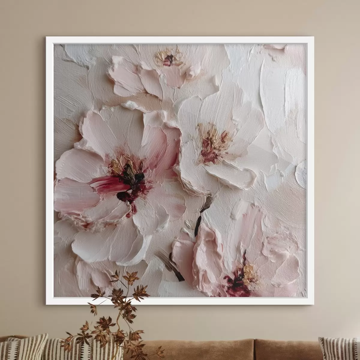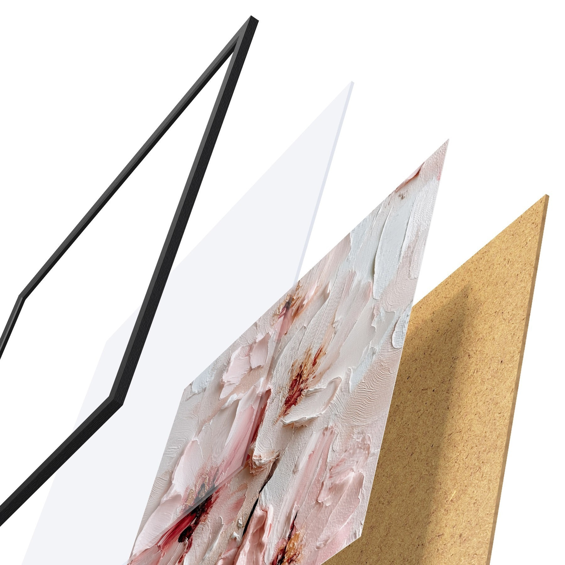 Poster Blumen mit Imitation im Impasto-Stil in rosa und weißen Strichen Nr f44333