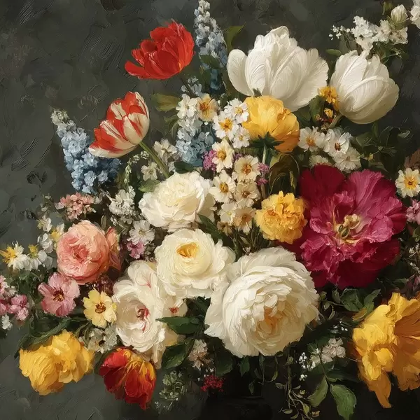 Poster Blumenstrauß aus verschiedenen Blumen mit reichen Farbtönen Nr f44334