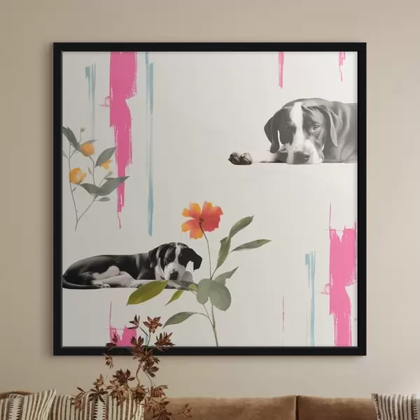 Poster Schwarz-weiße Deutsche Dogge mit traurigen Augen f44339