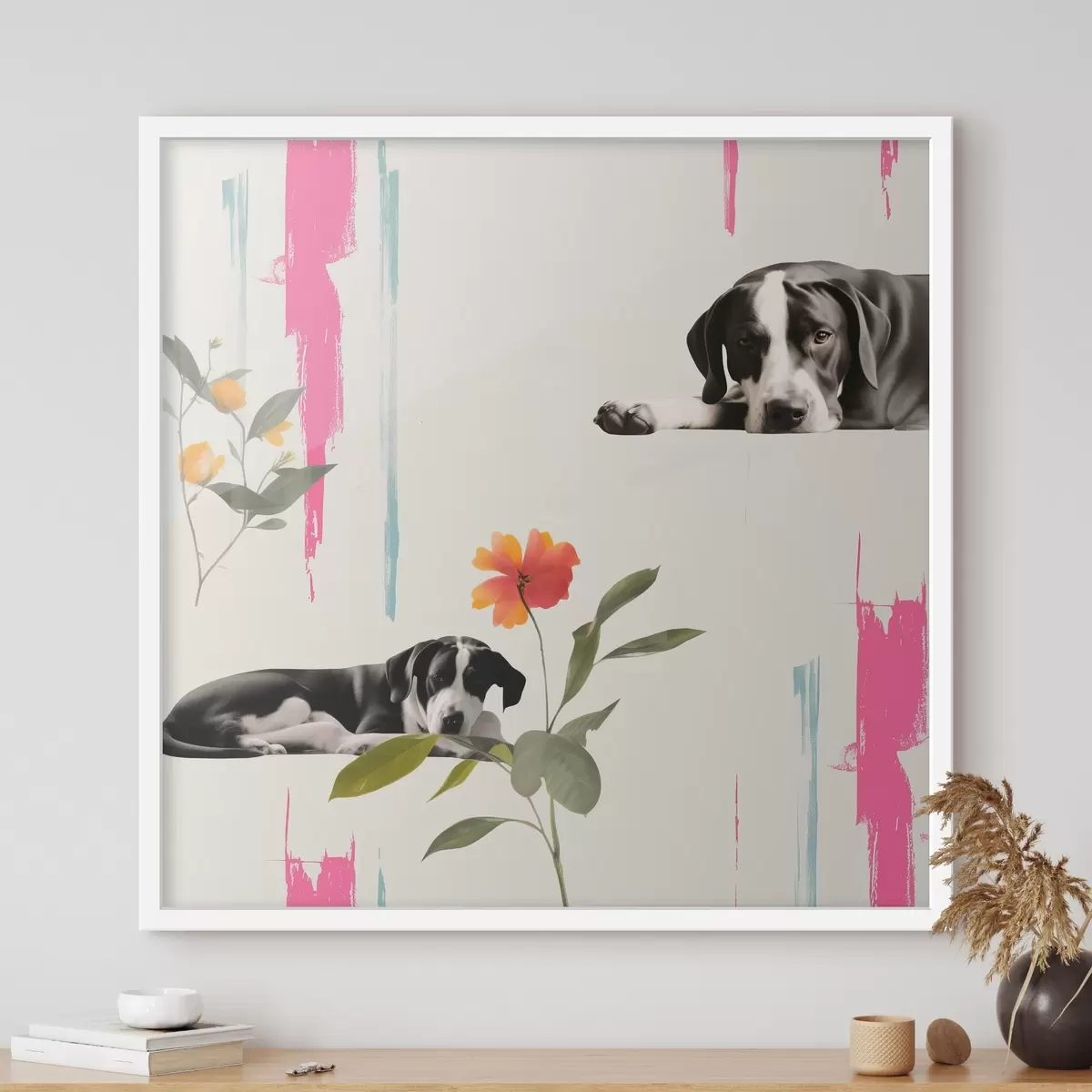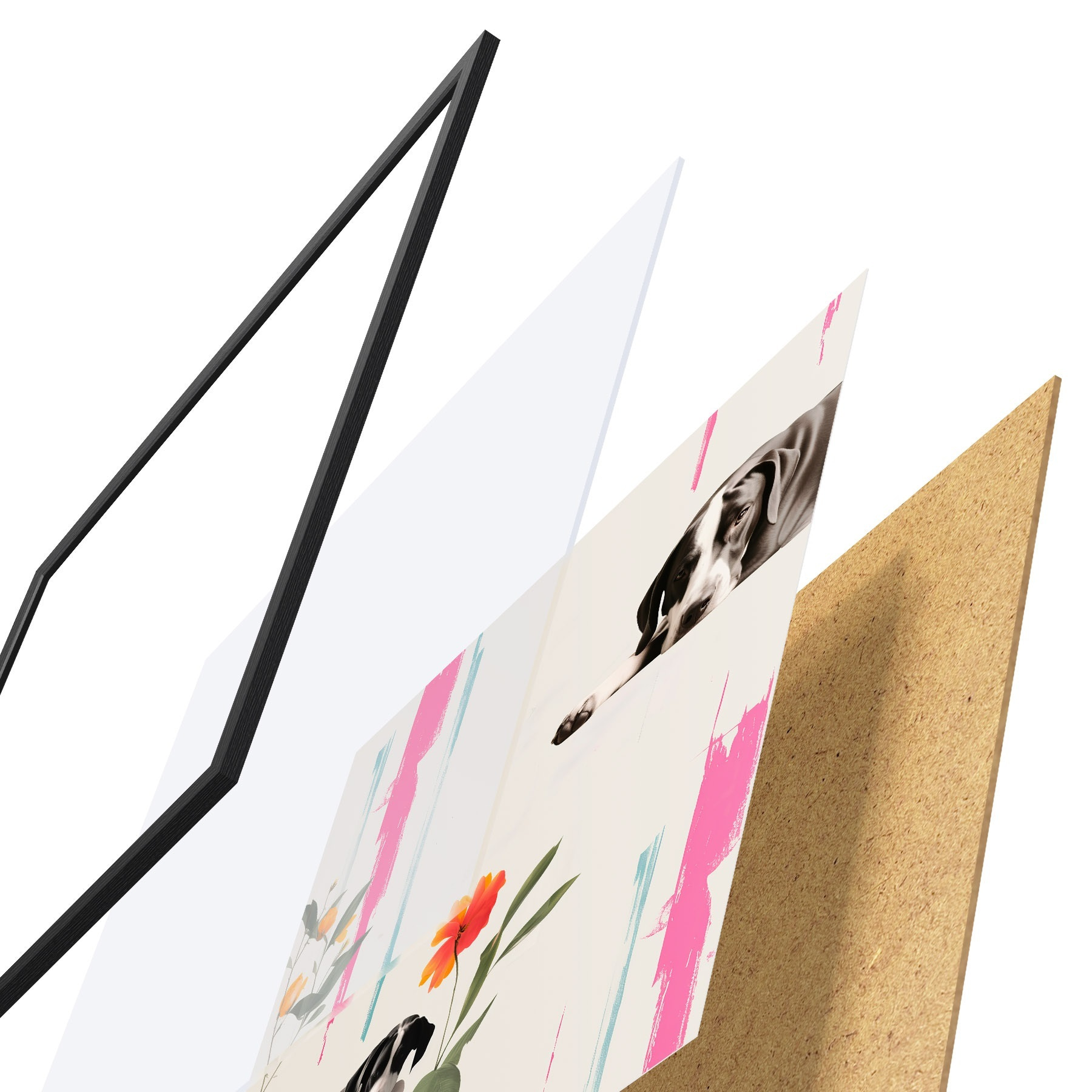 Poster Schwarz-weiße Deutsche Dogge mit traurigen Augen Nr f44339