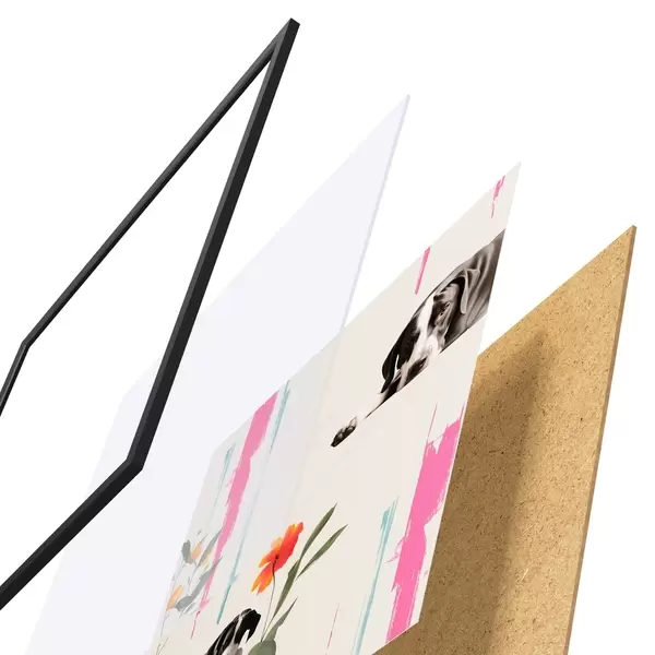 Das Poster besteht aus einem Rahmen, Plexiglas, einem gedruckten Bild und einer Rückwand aus Spanplatten. Dank der Halterungen auf der Rückseite kann das Poster sofort an die Wand gehängt werden.