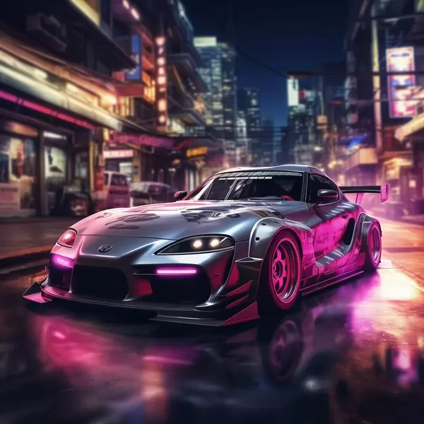 Poster Supra: Die Evolution der Geschwindigkeit im Neon-Dunst f44343