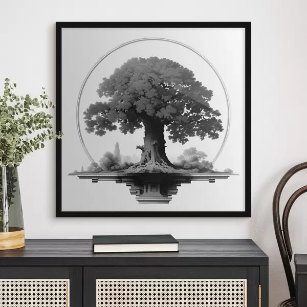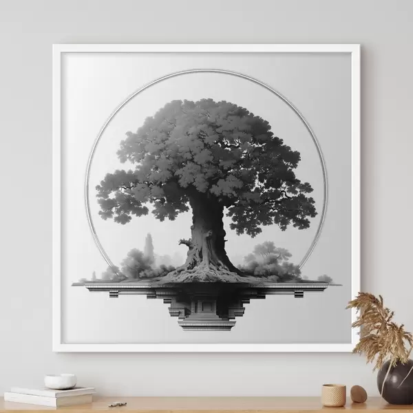 Poster Monochromer Baum mit mächtigem Stamm und weit ausladender Krone Nr f44346