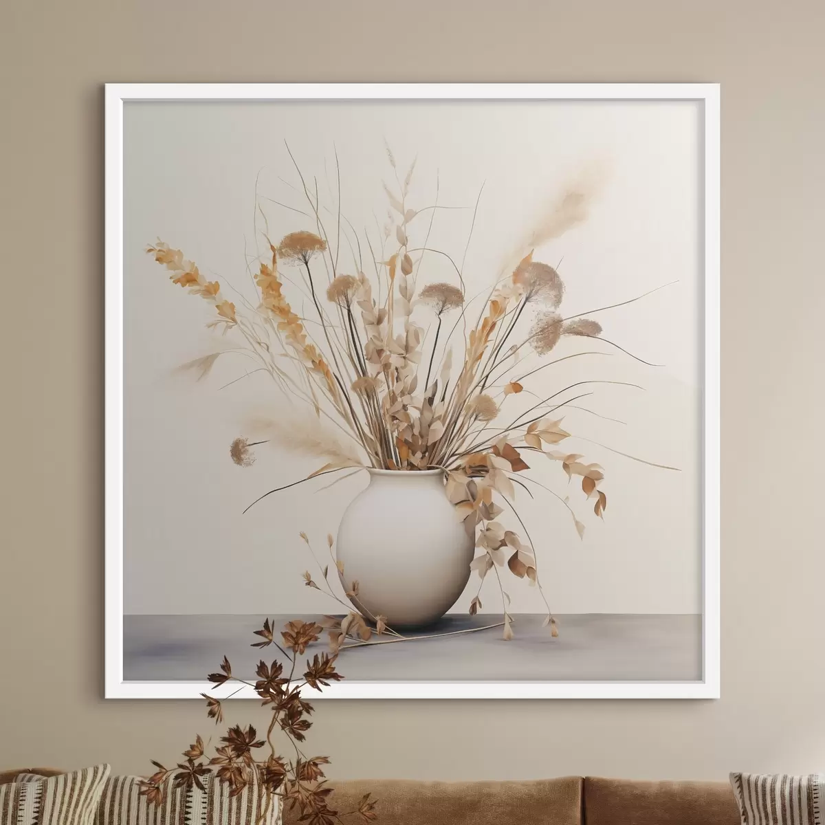 Poster Arrangement aus getrockneten Gräsern und Blumen in einer weißen Vase f44348