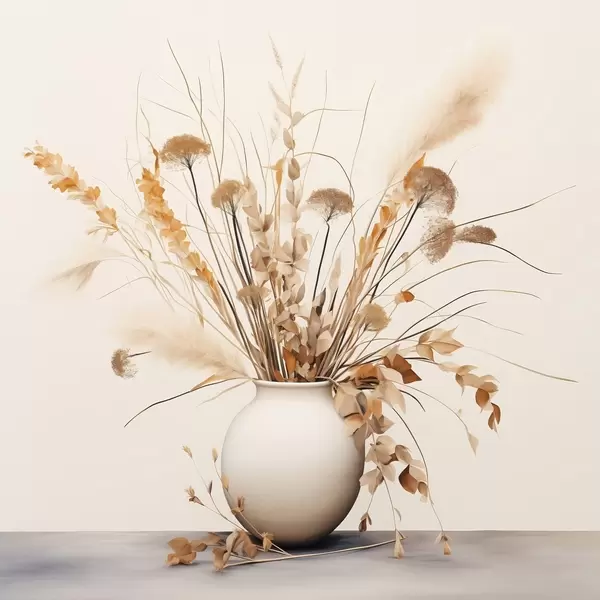 Poster Arrangement aus getrockneten Gräsern und Blumen in einer weißen Vase Nr f44348