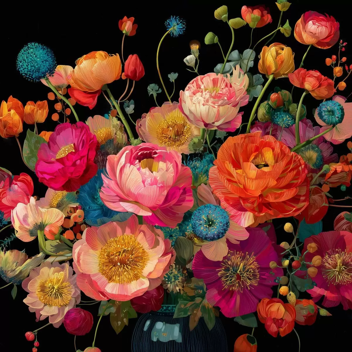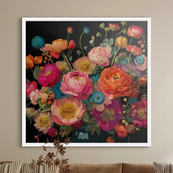 Poster Blumenextravaganz auf schwarzem Hintergrund f44352