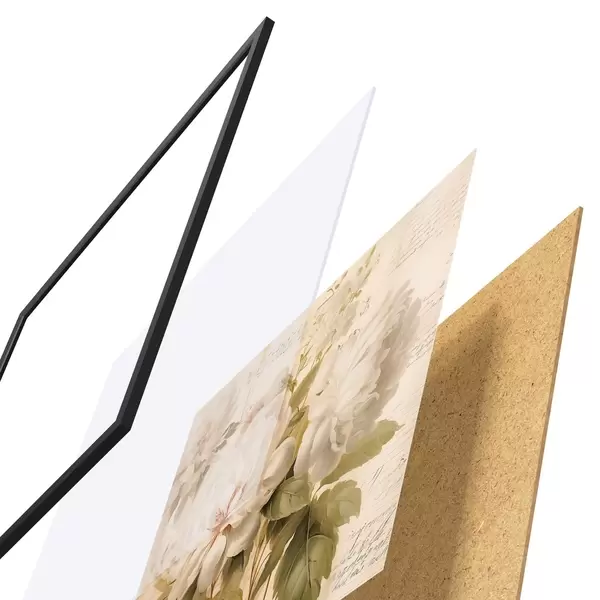 Das Poster besteht aus einem Rahmen, Plexiglas, einem gedruckten Bild und einer Rückwand aus Spanplatten. Dank der Halterungen auf der Rückseite kann das Poster sofort an die Wand gehängt werden.