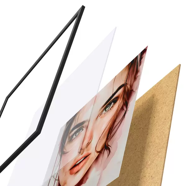 Das Poster besteht aus einem Rahmen, Plexiglas, einem gedruckten Bild und einer Rückwand aus Spanplatten. Dank der Halterungen auf der Rückseite kann das Poster sofort an die Wand gehängt werden.