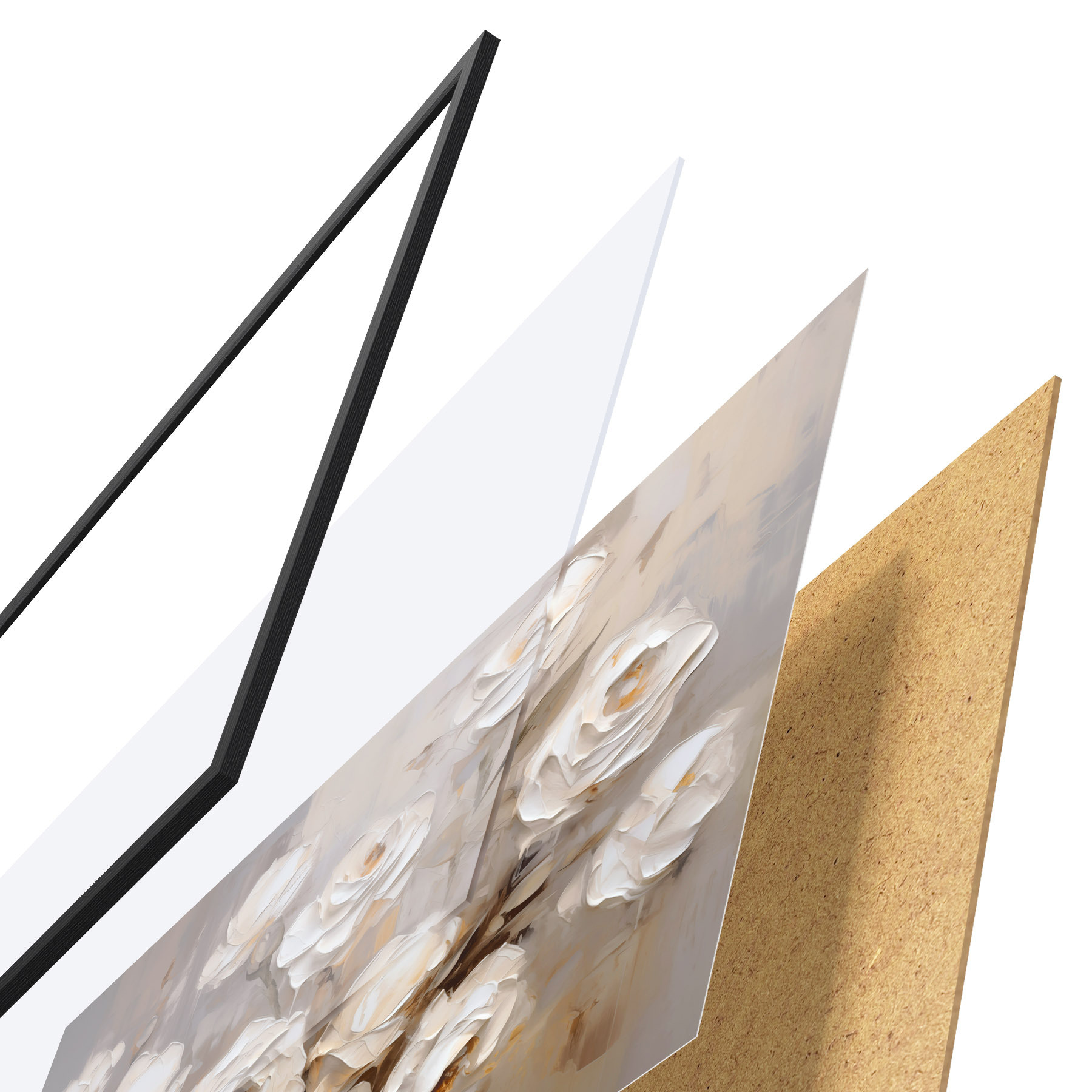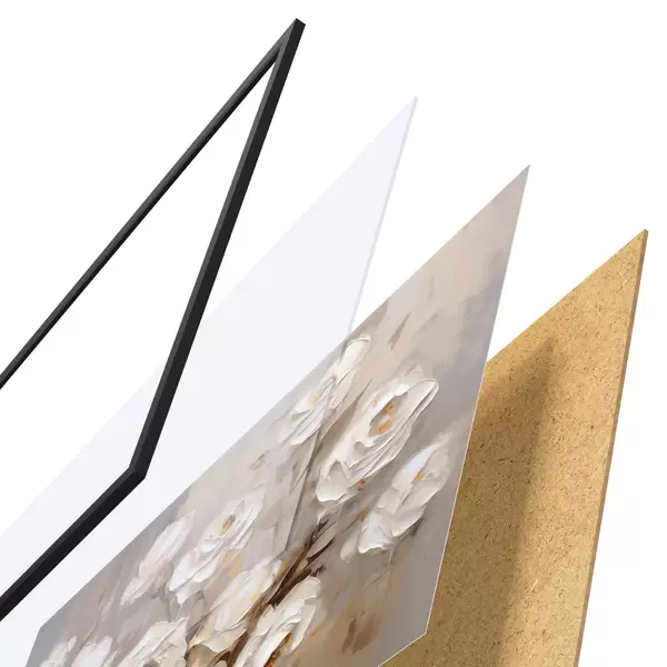Das Poster besteht aus einem Rahmen, Plexiglas, einem gedruckten Bild und einer Rückwand aus Spanplatten. Dank der Halterungen auf der Rückseite kann das Poster sofort an die Wand gehängt werden.