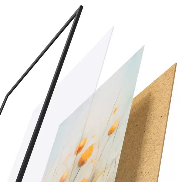 Das Poster besteht aus einem Rahmen, Plexiglas, einem gedruckten Bild und einer Rückwand aus Spanplatten. Dank der Halterungen auf der Rückseite kann das Poster sofort an die Wand gehängt werden.