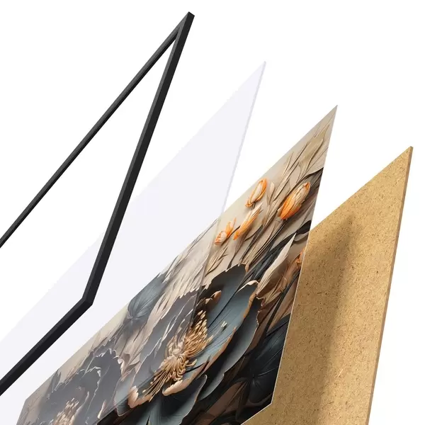 Das Poster besteht aus einem Rahmen, Plexiglas, einem gedruckten Bild und einer Rückwand aus Spanplatten. Dank der Halterungen auf der Rückseite kann das Poster sofort an die Wand gehängt werden.