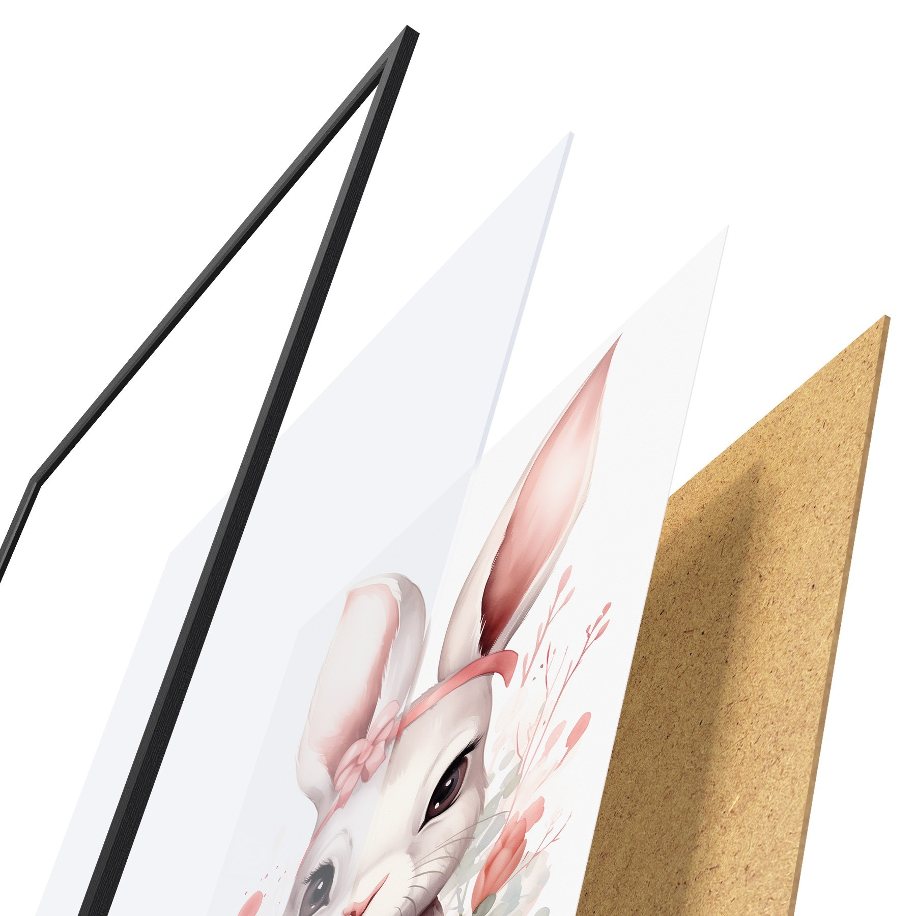 Das Poster besteht aus einem Rahmen, Plexiglas, einem gedruckten Bild und einer Rückwand aus Spanplatten. Dank der Halterungen auf der Rückseite kann das Poster sofort an die Wand gehängt werden.