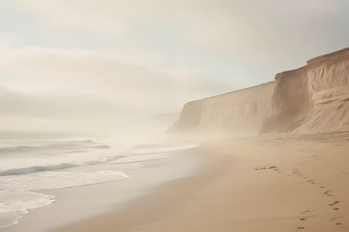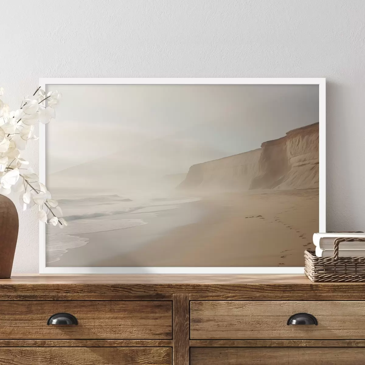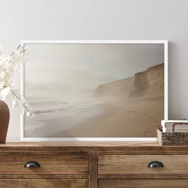 Poster Landschaft eines Sandstrandes mit einer Klippe an einem klaren sonnigen Tag Nr f44391