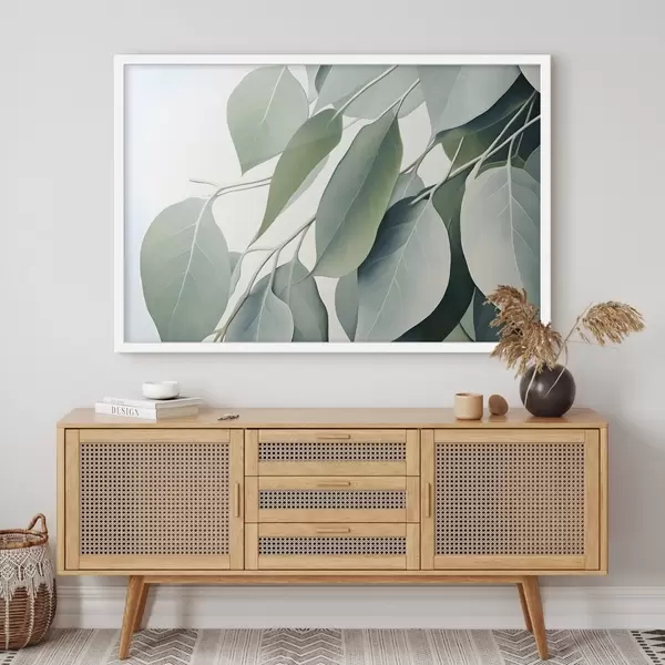 Poster Eukalyptusblätter mit einer weichen, gedeckten Farbpalette, einer beruhigenden und natürlichen Ästhetik Nr f44410