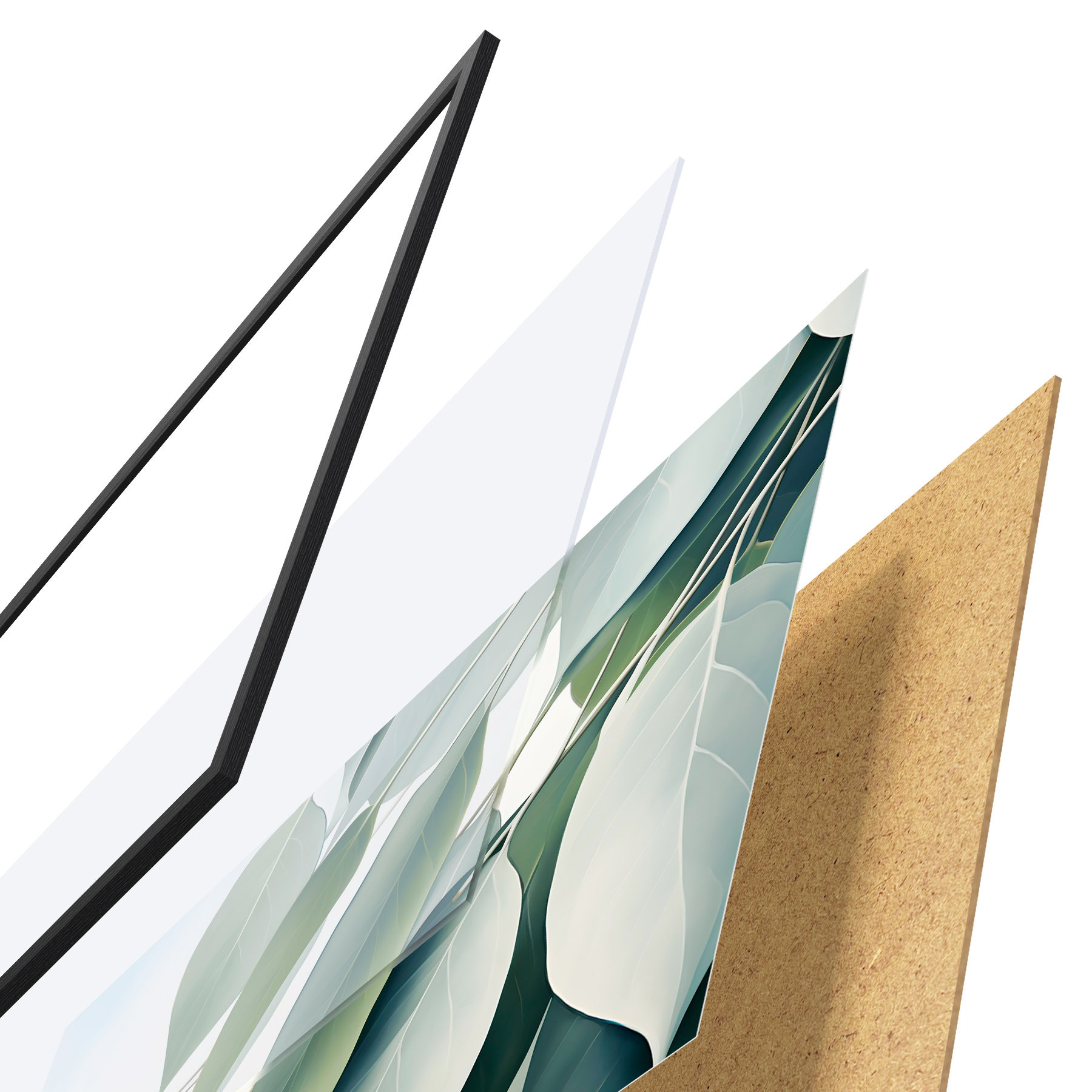 Das Poster besteht aus einem Rahmen, Plexiglas, einem gedruckten Bild und einer Rückwand aus Spanplatten. Dank der Halterungen auf der Rückseite kann das Poster sofort an die Wand gehängt werden.