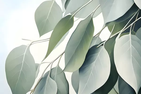Poster Eukalyptusblätter mit einer weichen, gedeckten Farbpalette, einer beruhigenden und natürlichen Ästhetik Nr f44410