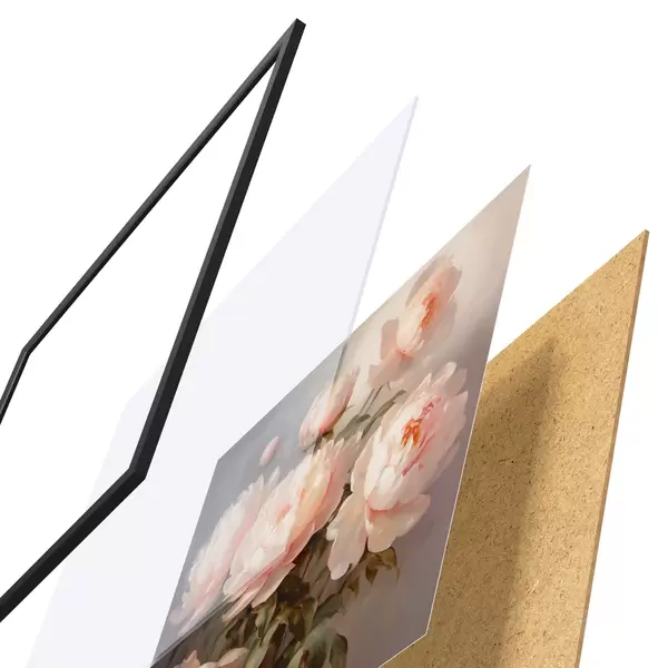 Das Poster besteht aus einem Rahmen, Plexiglas, einem gedruckten Bild und einer Rückwand aus Spanplatten. Dank der Halterungen auf der Rückseite kann das Poster sofort an die Wand gehängt werden.