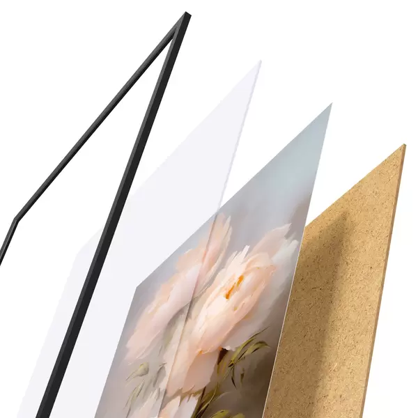 Das Poster besteht aus einem Rahmen, Plexiglas, einem gedruckten Bild und einer Rückwand aus Spanplatten. Dank der Halterungen auf der Rückseite kann das Poster sofort an die Wand gehängt werden.