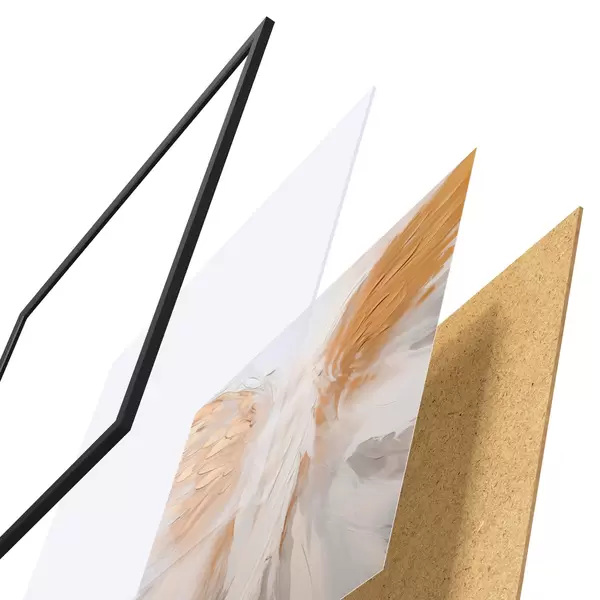 Das Poster besteht aus einem Rahmen, Plexiglas, einem gedruckten Bild und einer Rückwand aus Spanplatten. Dank der Halterungen auf der Rückseite kann das Poster sofort an die Wand gehängt werden.