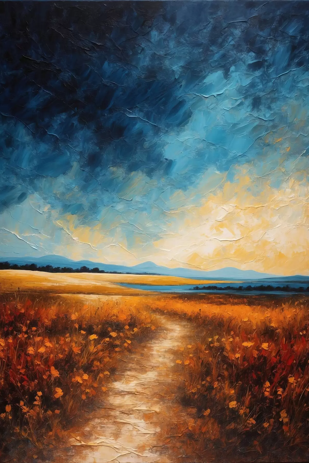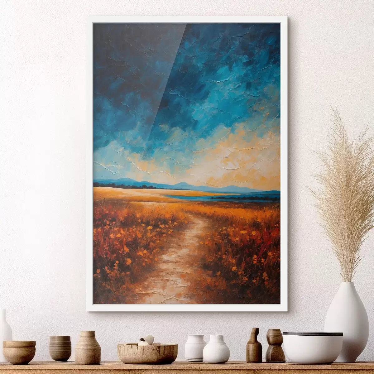 Poster Blumenfeld am Abend im Stil der Acrylmalerei f44440