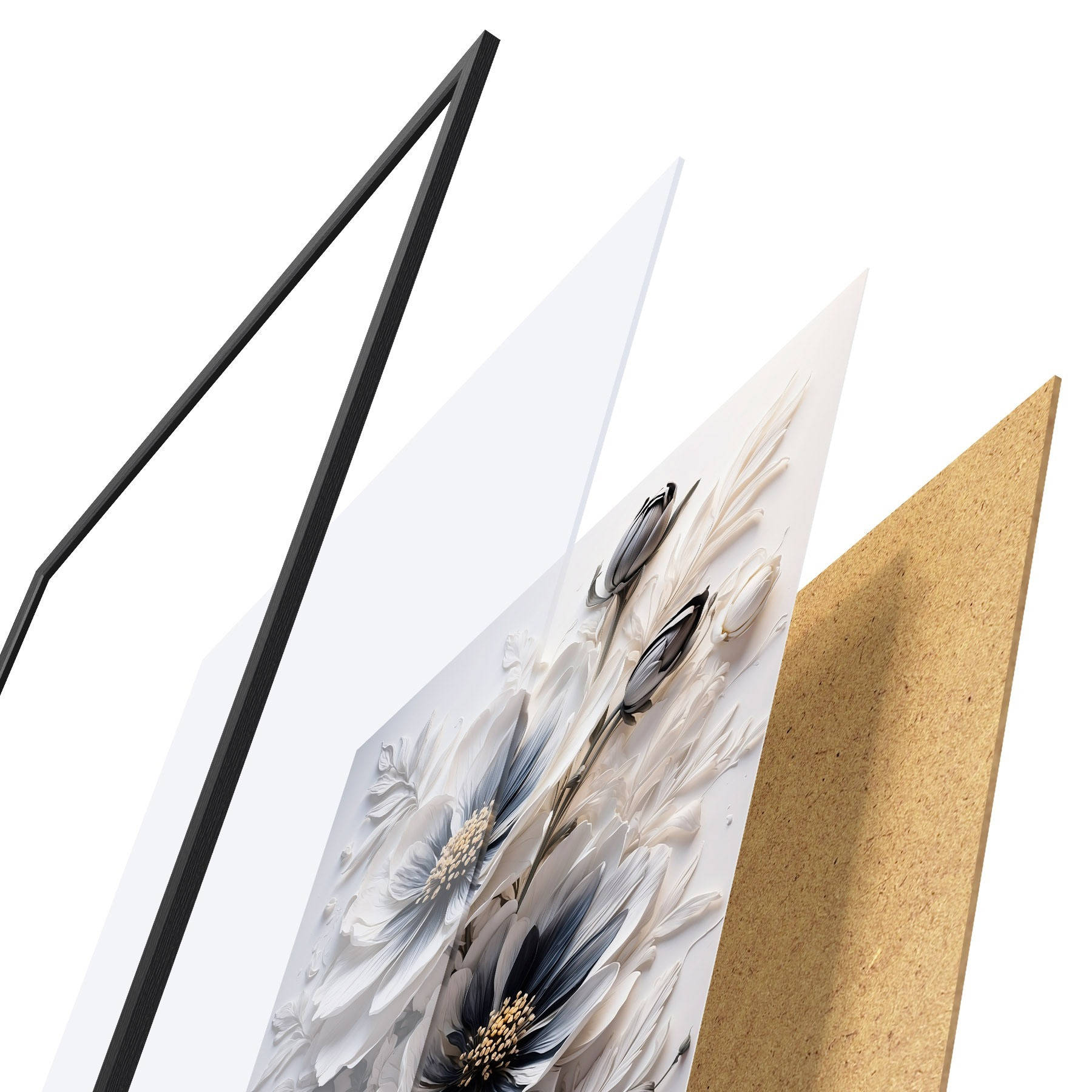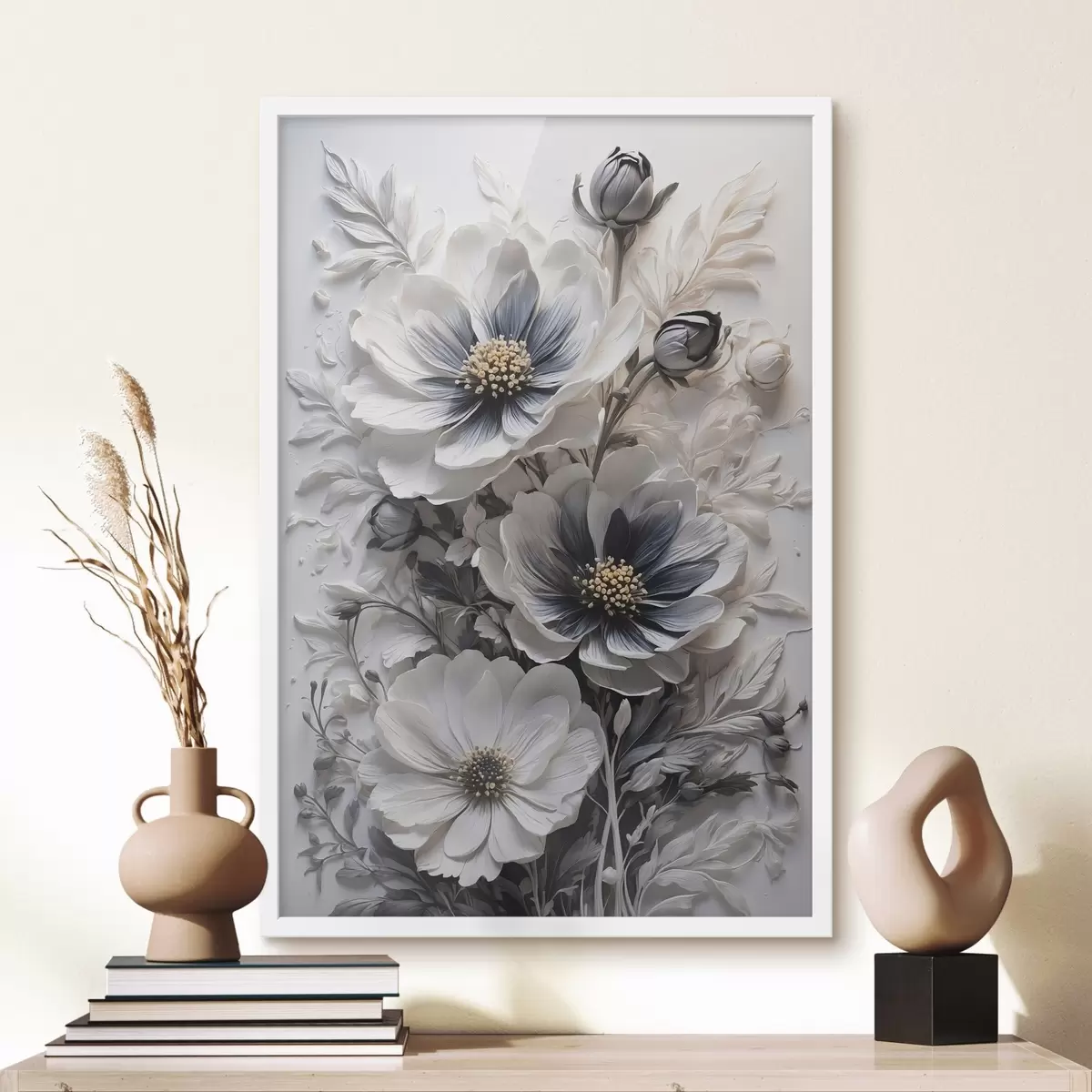 Poster Schwarze und weiße Blumen auf weißem Hintergrund Nr f44446