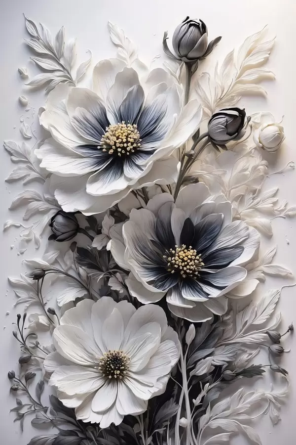 Poster Schwarze und weiße Blumen auf weißem Hintergrund Nr f44446