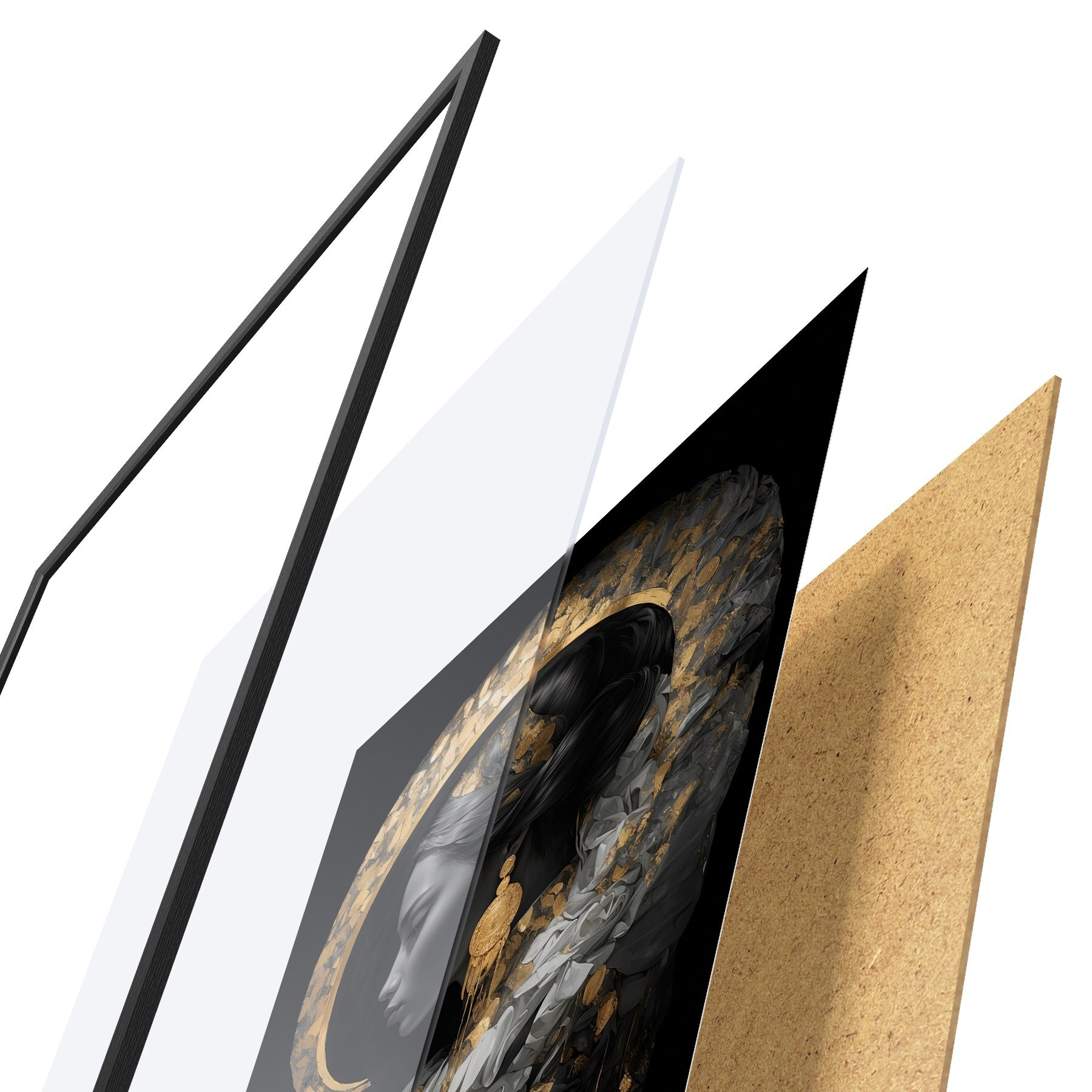 Das Poster besteht aus einem Rahmen, Plexiglas, einem gedruckten Bild und einer Rückwand aus Spanplatten. Dank der Halterungen auf der Rückseite kann das Poster sofort an die Wand gehängt werden.