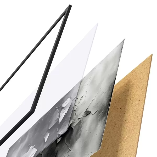 Das Poster besteht aus einem Rahmen, Plexiglas, einem gedruckten Bild und einer Rückwand aus Spanplatten. Dank der Halterungen auf der Rückseite kann das Poster sofort an die Wand gehängt werden.