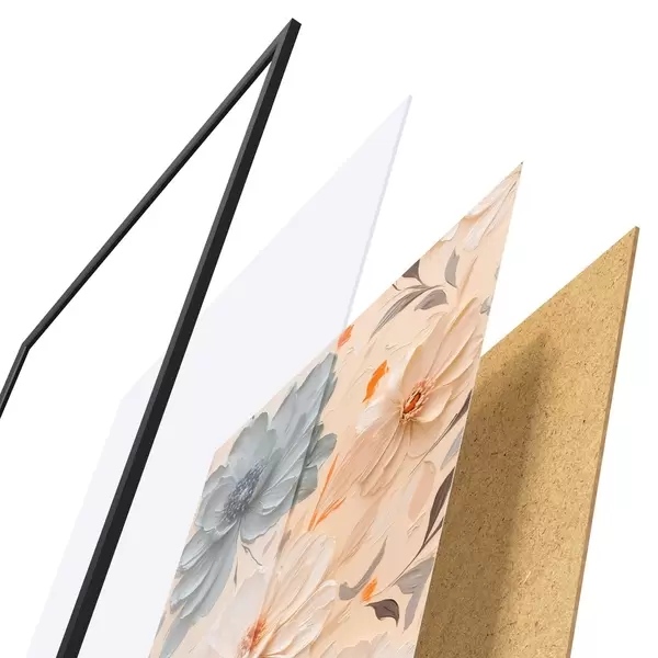 Das Poster besteht aus einem Rahmen, Plexiglas, einem gedruckten Bild und einer Rückwand aus Spanplatten. Dank der Halterungen auf der Rückseite kann das Poster sofort an die Wand gehängt werden.
