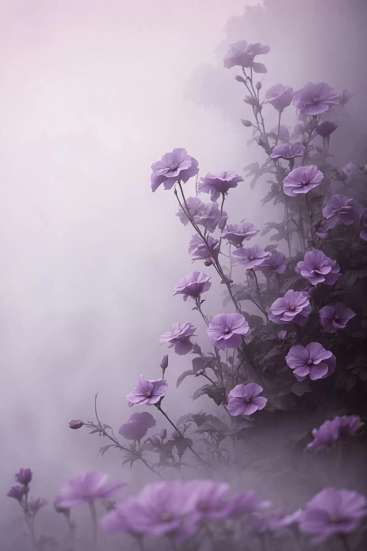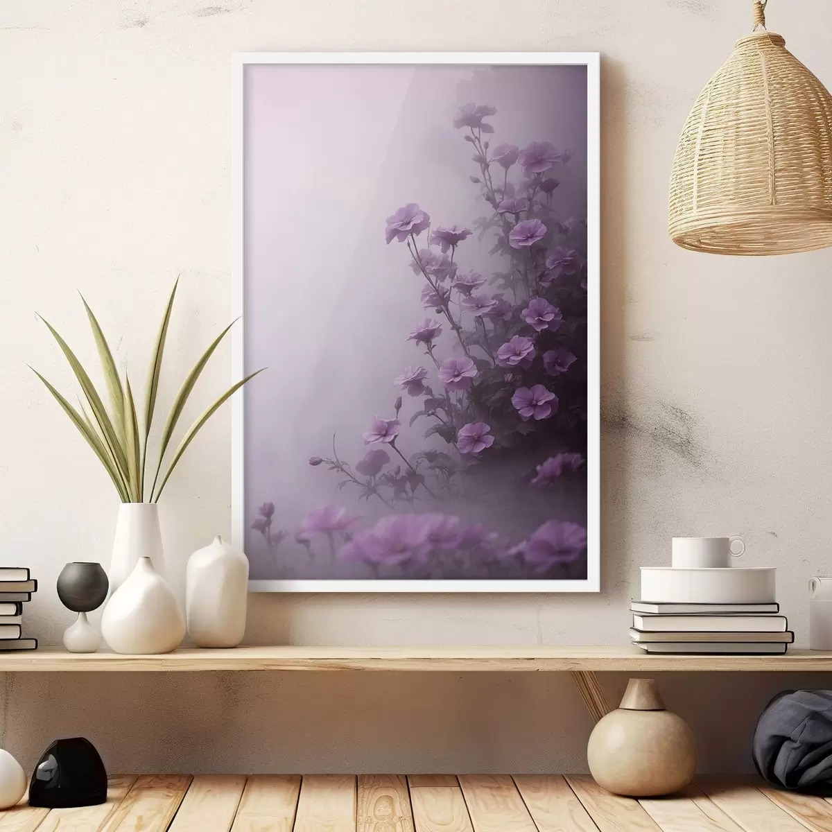 Poster Lila Blumen im Nebel Nr f44456