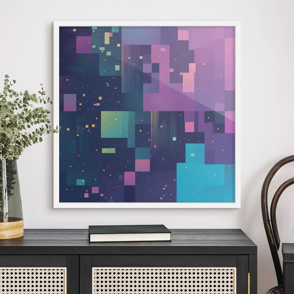 Poster Abstrakte Malerei mit mehrfarbigen rechteckigen Figuren Nr f44457