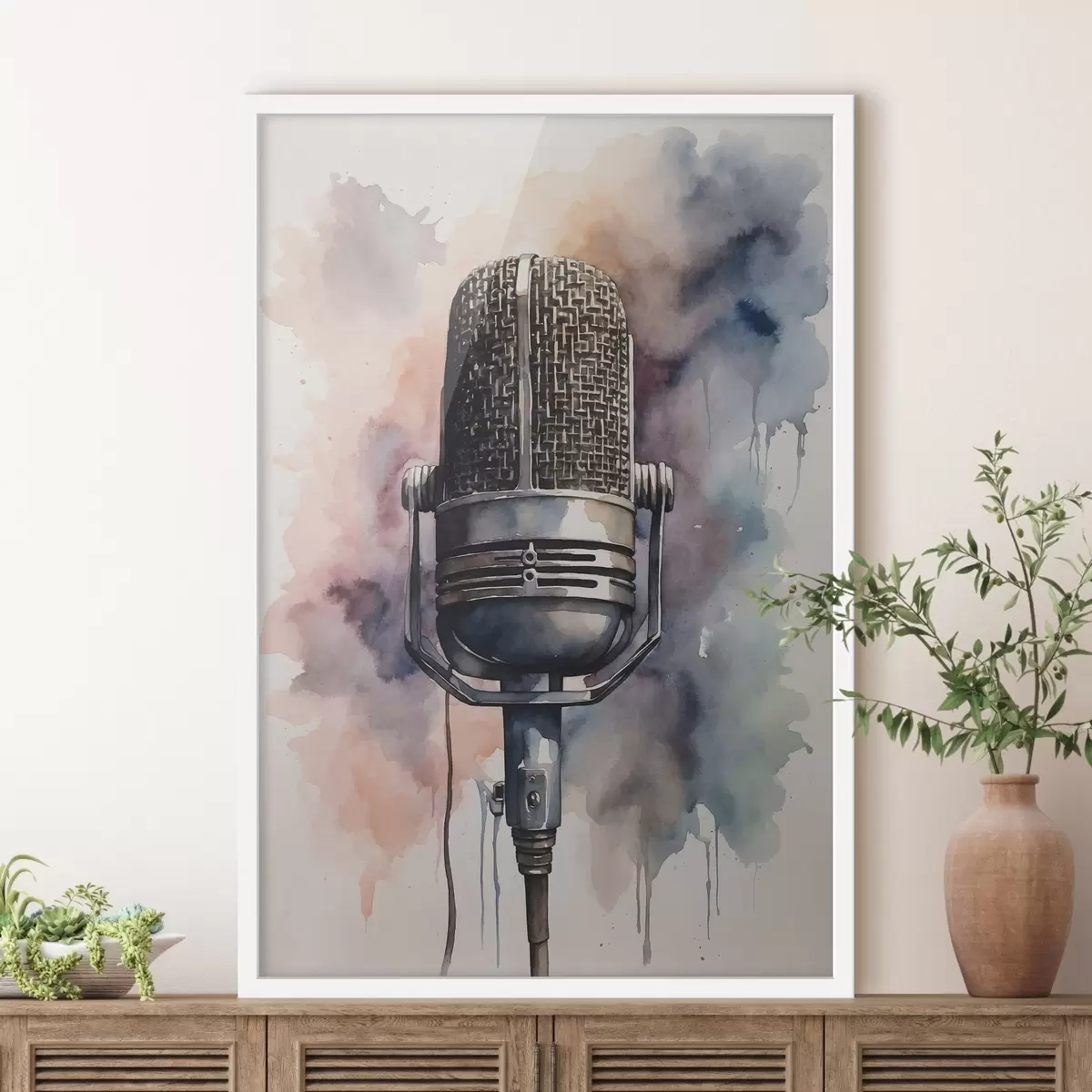 Poster Mikrofon auf Aquarell-Hintergrund Nr f44463