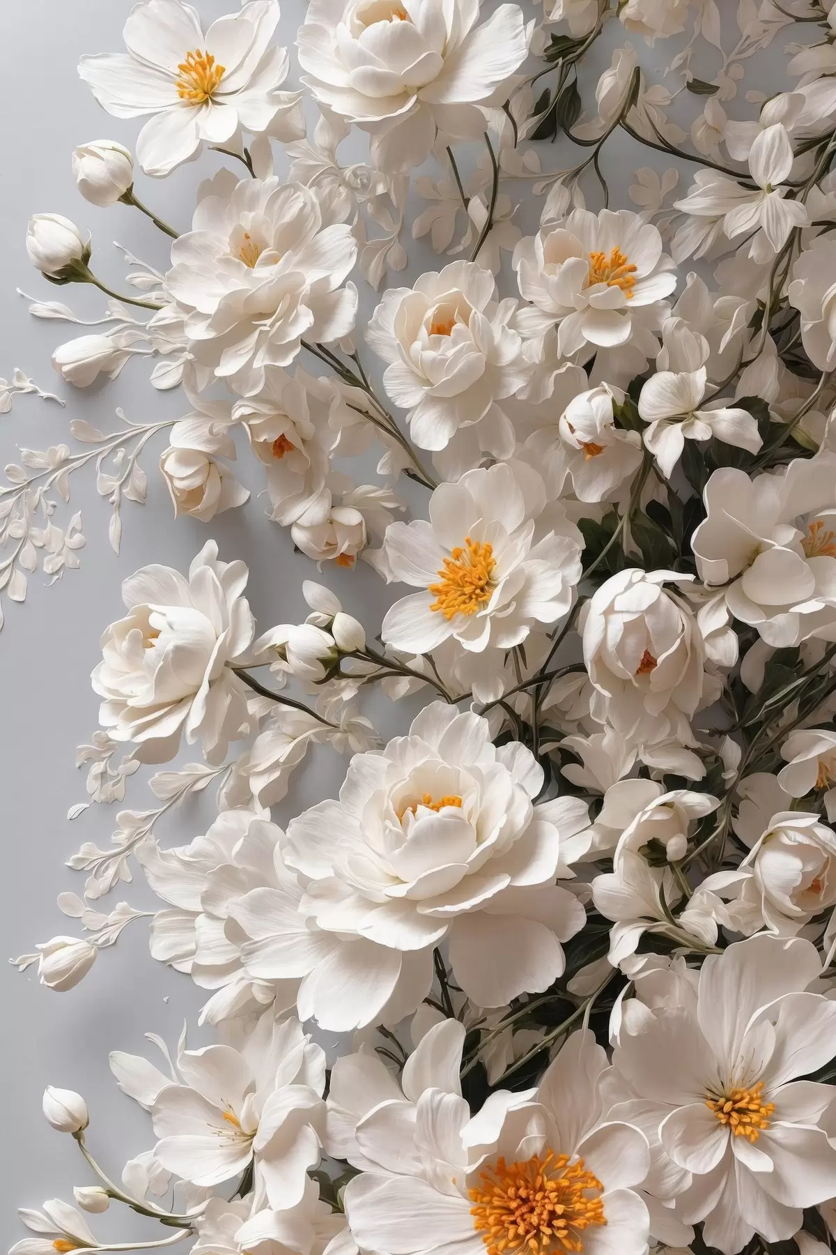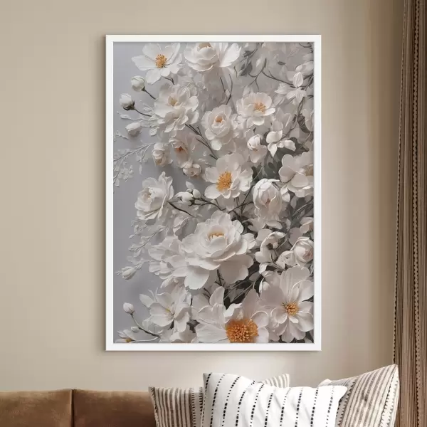 Poster Weiße Blumen und Blätter auf weißem Hintergrund f44465