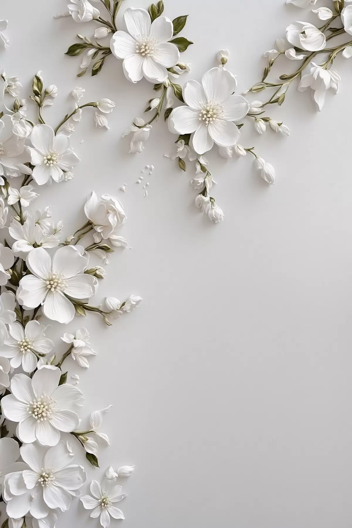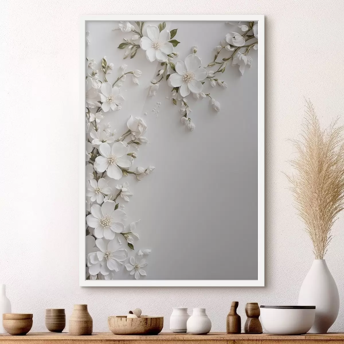 Poster Weiße Blumen auf weißem Wandhintergrund Nr f44466