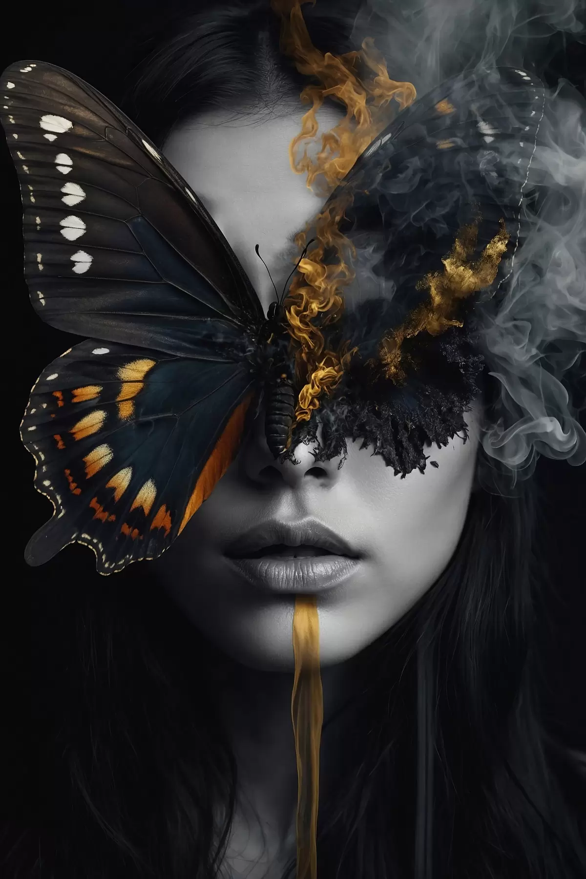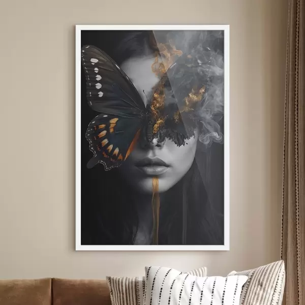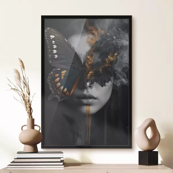 Poster Brennender Schmetterling auf dem Gesicht eines Mädchens Nr f44468