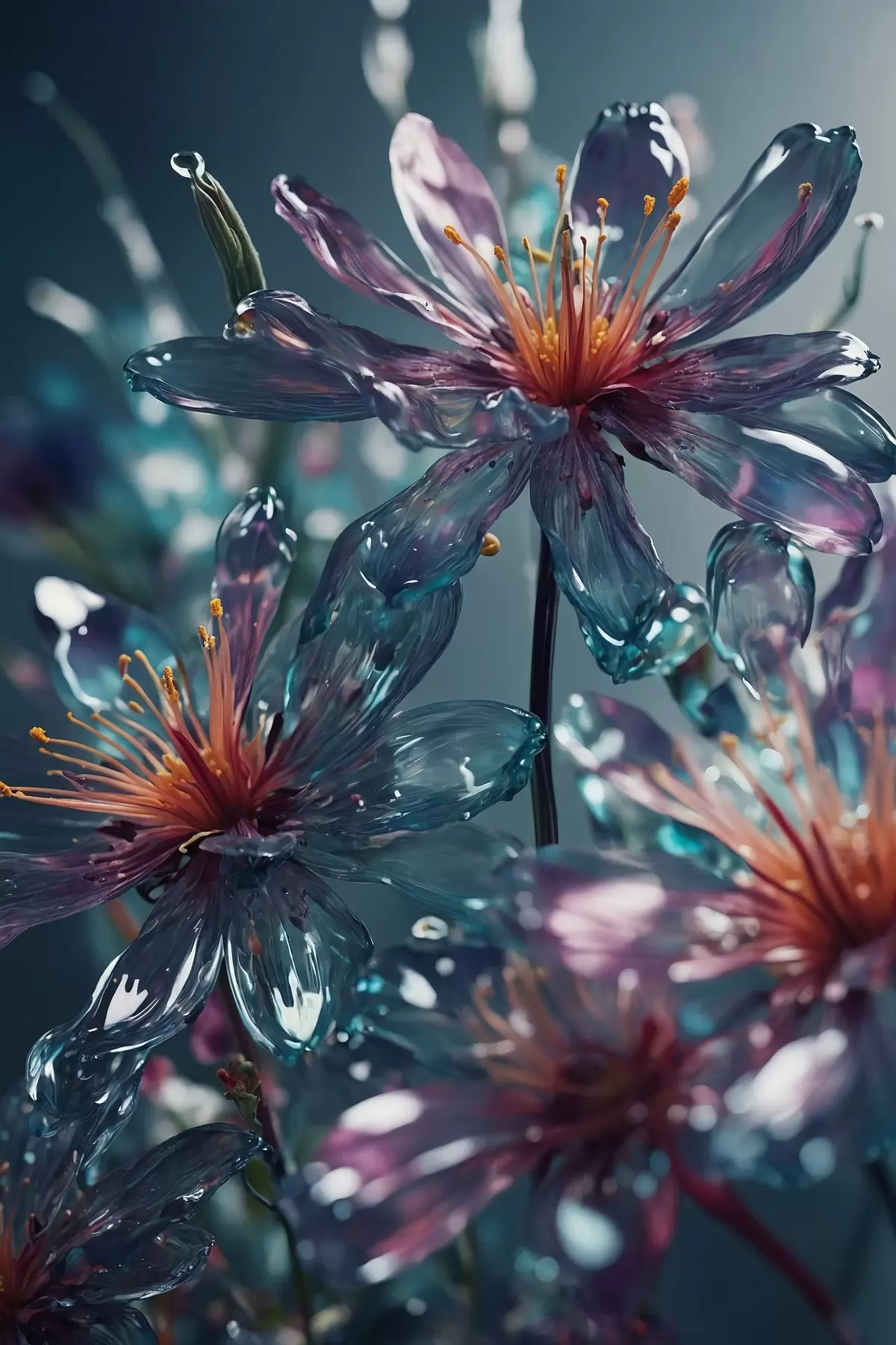 Poster Transparente Blumen auf unscharfem Hintergrund Nr f44469